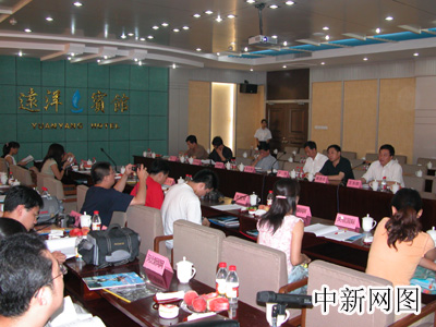 唐山海港开发区管委会领导与“网上河北行”记者座谈。(秦欣摄)