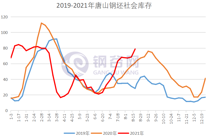从唐山钢坯库存数据来看,目前钢坯库存处于今年以来相对高位,并且同比2020年和2019年均增加,同比2020年增加17.56万吨;同比2019年同期增加50.42万吨。