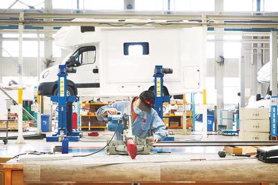 唐山亚特专用汽车有限公司的工人正在进行铝型材切割。河北日报通讯员 邹谦摄