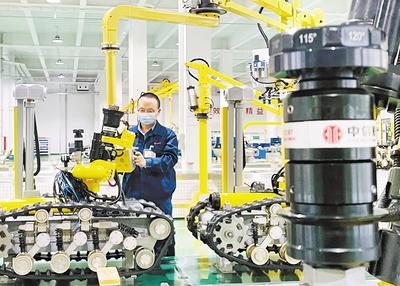 近日,中信重工开诚智能装备有限公司的技术工人正在组装消防机器人。河北日报通讯员 田秋月摄