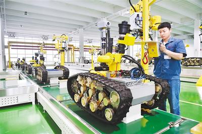 7月30日,在唐山国家高新技术产业开发区中信重工开诚智能装备有限公司,技术人员正在调试特种机器人产品。河北日报记者 赵 杰摄