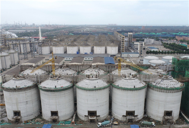 近日,位于河北省唐山市海港经济开发区的中储粮唐山直属库粮食仓储项目正加紧施工建设。据介绍,该项目主要建设单仓储量1万吨的浅圆仓62座及提升塔、汽车接收站等配套设施。新华社记者杨世尧摄