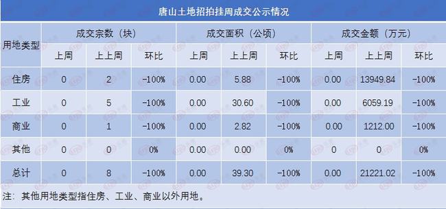 截至1月17日10时,编辑监测中国土地网土地数据,上周(2022年1月10日-2022年1月16日)唐山土地成交0宗。