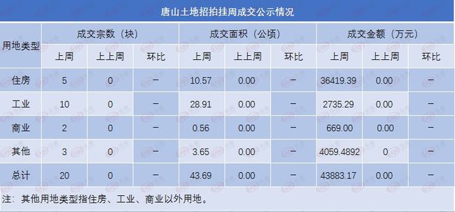 市场成交上周唐山土地成交20宗 来电量环涨7273%