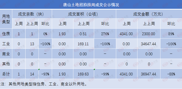 市场成交|上周唐山预售和土地市场双挂零