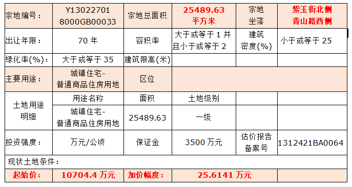 经迁西县人民政府批准,迁西县自然资源和规划局决定以 拍卖 方式出让 1(幅) 地块的国有土地使用权。现将有关事项公告如下: